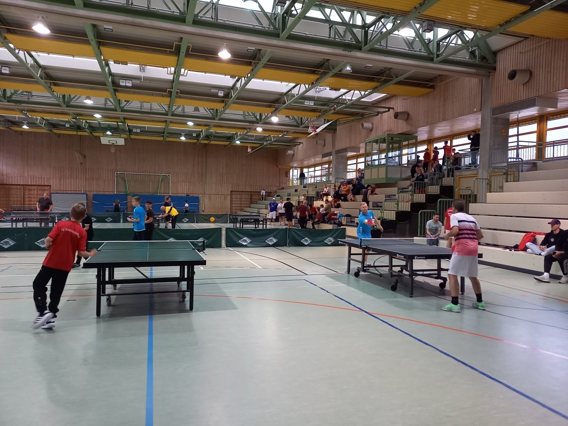 Nach 2-jähriger Coronapause fanden die Stadtmeisterschaften für Hobbytischtennisspieler in der Großen Sporthalle in Niederstetten mit einer Rekordteilnahme wieder statt. Insgesamt nahmen 44 Jugendliche und Erwachsene am Turnier teil. Die Einzelspiele fanden im DoppelKO-System statt, das heißt, dass ein Spieler, der in der Hauptrunde ein Spiel verloren hat über die Trostrunde dennoch bis ins Endspiel kommen kann. Erst bei 2 Niederlagen ist man aus dem Turnier ausgeschieden. Alle Hobbyspieler traten mit großem Elan und Eifer die Spiele an. Die vielen Zuschauer sahen spannende Spiele und mancher Spieler verausgabte sich bis zur vollsten Erschöpfung. Für Tischtennis braucht es nicht nur Schnelligkeit und Ballgefühl, sondern auch ausreichende Kondition, um ein langes Turnier durchzustehen. Bei den Jugendlichen erreichten Fabian Luksch und Robert Schmitt nach spannenden Spielen das Endspiel. Hier behielt Fabian die Oberhand und stand somit als Sieger der Jugendhobbyspieler fest. Noah Mayer erreichte den dritten Platz. Im Doppelwettbewerb setzten sich Fabian Luksch und Emil Dod gegen Nico Tippl und Robert Schmitt durch. Frederik Endress und Noah Mayer belegten den dritten Platz. Somit konnte Fabian Luksch beide Titel gewinnen.